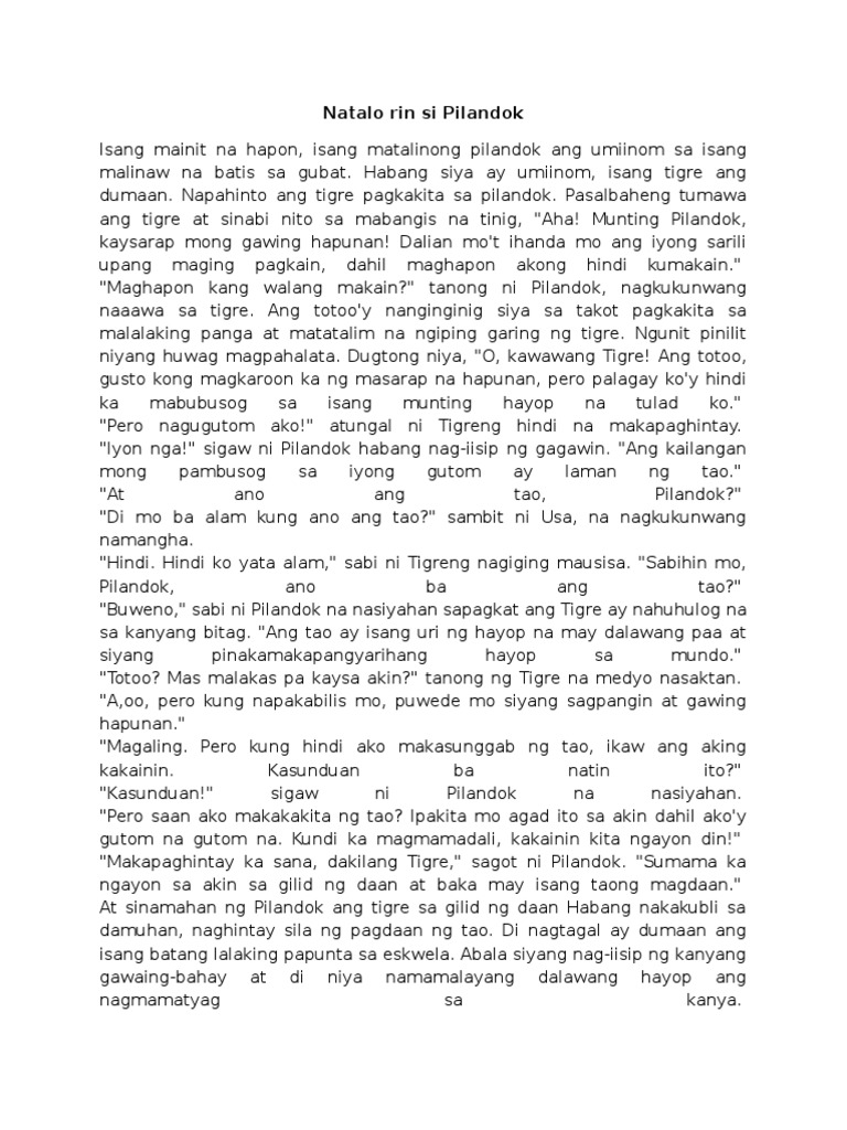 Natalo rin si Pilandok ay isang pabula na kapupulutan ng maraming aral sa buhay. View NATALO RIN SI PILANDOKpptx from BSES 1517361-1 at Don Mariano Marcos Memorial State University. Magbigay ng patunay batay sa.