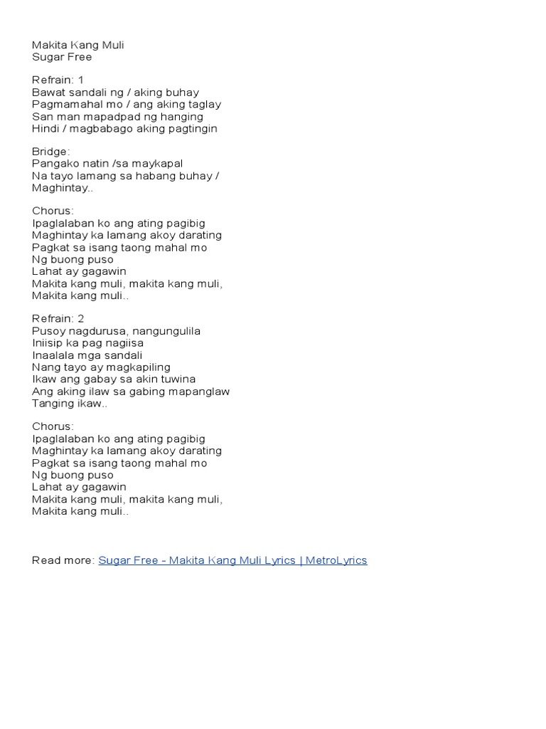 Makita Kang Muli Panday Theme Music and Lyrics by. Makita Kang Muli Chords Tabs. Lyrics of makita kang muli by sugar free Posted by janine on Wed 01042006 - 0822.